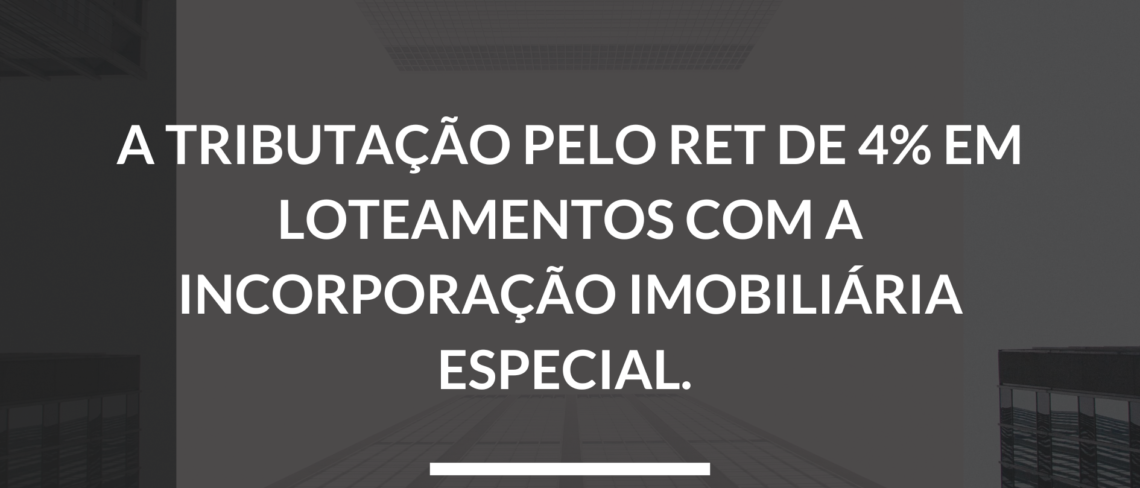 Em 2022 a Lei 4591/64 (Lei das Incorporações) sofreu algumas alterações pela lei 14.382 de 2022, entre elas trouxe a possibilidade de uma incorporação imobiliária especial que pode ser viabilizada pelos loteadores, e com isto a possibilidade da tributação pelo RET de 4%.