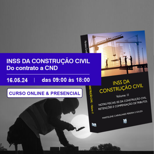*INSCRIÇÕES ABERTAS* Curso acontecerá no dia 16 de maio de 2024. Serão apresentadas soluções práticas aos participantes quanto aos procedimentos, as necessidades e exigências da Receita Federal quanto às obras e serviços de construção civil, na regularização de obras a partir do eSocial e do Reinf CNO de obras e o SERO, novo procedimento para obter a CND de obra.