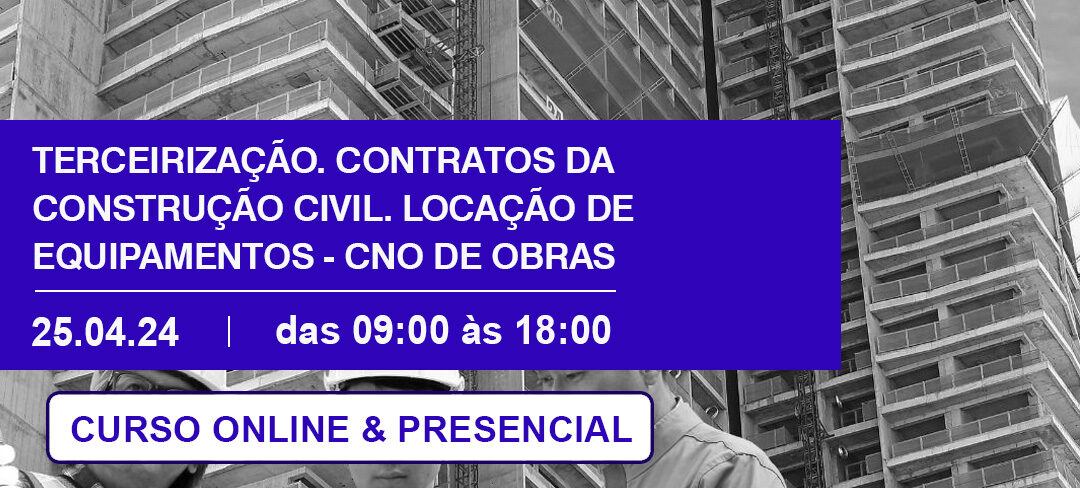 *INSCRIÇÕES ABERTAS* Curso acontecerá no dia 25 de abril de 2024. Serão apresentadas de forma objetiva as questões principais nas negociações com empreiteiros e aquisição de materiais quanto aos aspectos tributários e garantir uma compra tanto de serviços como de materiais com o menor custo real. Serão abordados os aspectos da lei de terceirização e […]