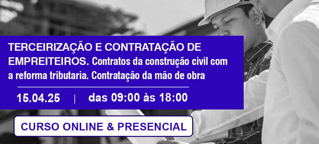 *INSCRIÇÕES ABERTAS – Curso acontecerá no dia 15 de abril de 2025. Serão apresentadas de forma objetiva as questões principais nas negociações com empreiteiros e aquisição de materiais quanto aos aspectos tributários e garantir uma compra tanto de serviços como de materiais com o menor custo real. Serão abordados os aspectos da lei de terceirização […]
