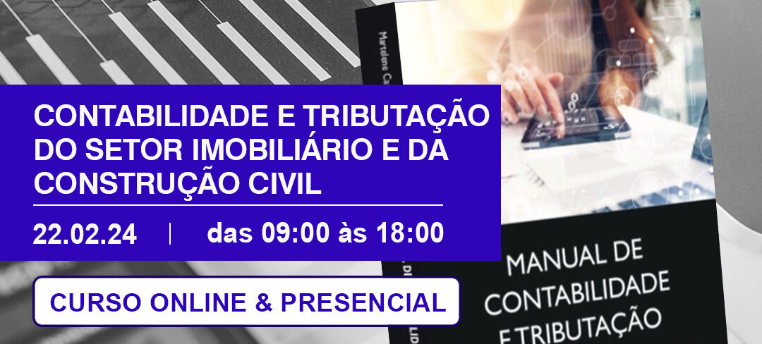 *INSCRIÇÕES ABERTAS* – Curso programado para 22 de fevereiro de 2024 O Objetivo é propiciar aos participantes o entendimento da metodologia contábil da atividade imobiliária e da construção civil, que fornecem informações a terceiros, e se obrigam às normas internacionais e a legislação tributária brasileira em relação aos tributos federais.