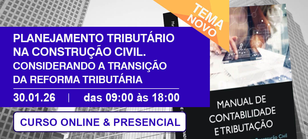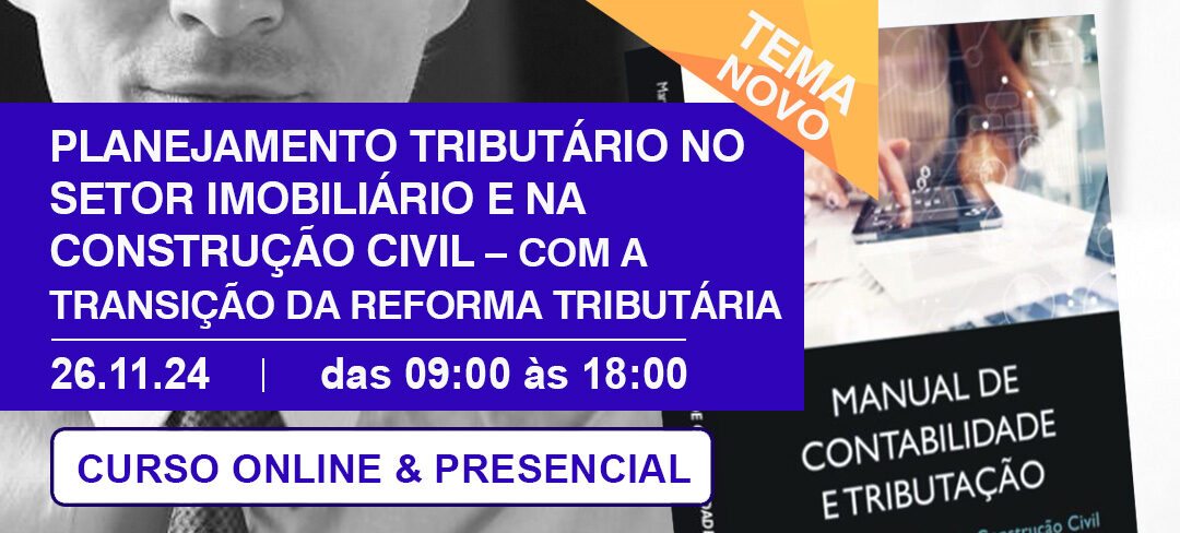 O que esperar da REFORMA TRIBUTÁRIA? INSCRIÇÕES ABERTAS* Curso acontecerá no dia 18 de janeiro de 2024. Dominar as práticas do setor e as normas tributárias é um grande desafio. O planejamento tributário exige um amplo conhecimento das Leis Tributárias, dos procedimentos fiscais e do setor complexo da construção civil. Este é o objetivo do […]