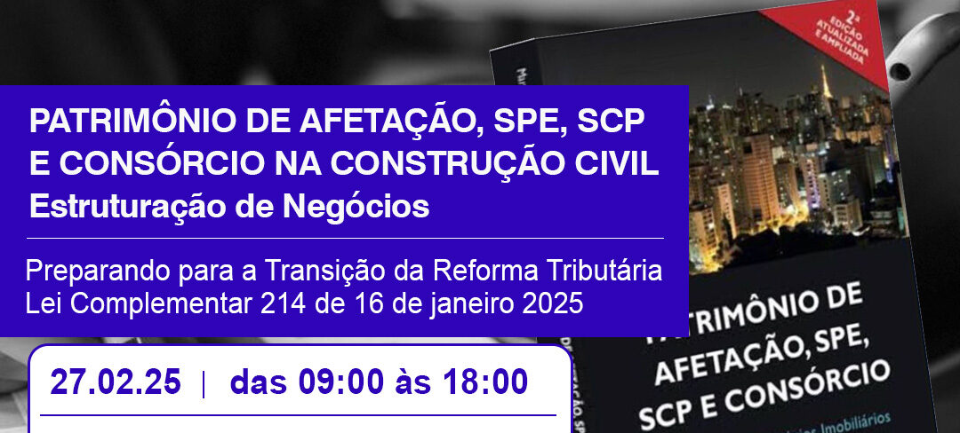 PREPARANDO PARA A TRANSIÇÃO DA REFORMA TRIBUTÁRIA – LC 214 – 16/JANEIRO/2025 – Curso acontecerá no dia 27 de fevereiro de 2025 Capacitar os participantes para que possam assimilar as possibilidades de estruturação dos negócios para a gestão de riscos, no formato de sociedades e de parcerias, oferecendo estruturas jurídicas adequadas a cada situação, considerando […]